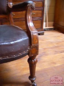 Mooiste antieke mahonie bureaustoel van Nederland, in hoogte verstelbaar en door veermechanisme kantelbaar naar achteren.