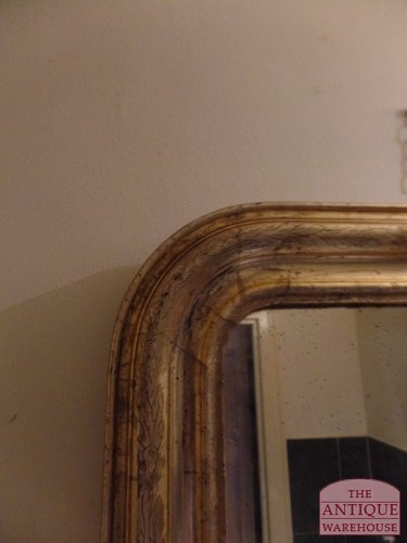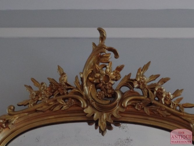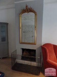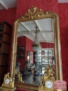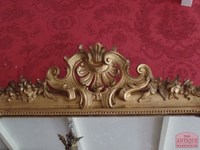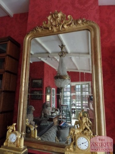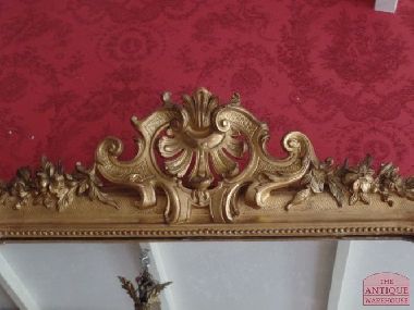 Zeer fraaie antieke Franse spiegel van een mooie kwaliteit. De lijst is aan de binnenkant afgewerkt met een parelrand hiernaast mooi met bladgoud afgewerkt. Deze franse spiegel heeft de afmeting 171 cm hoog en 105 cm breed. Prachtig kuif met schelp motief.