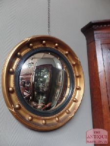 Antieke butler spiegel in geheel originele staat, diameter buitenkant 44 cm.