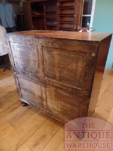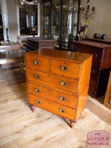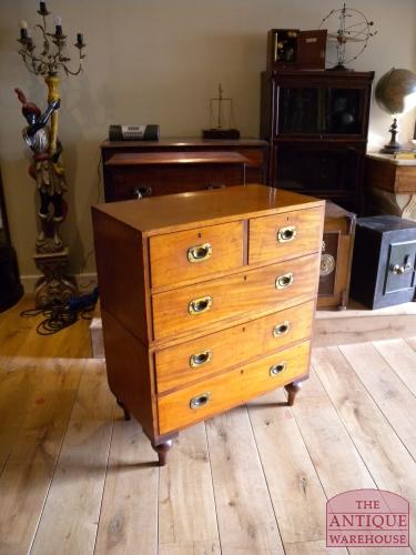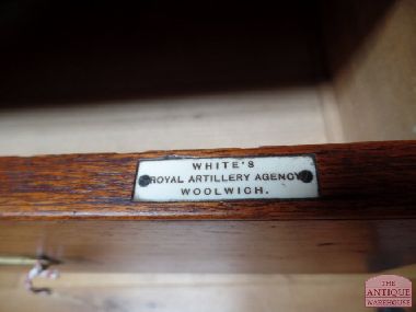 Zeer mooi antiek militair ladekastje afkomstig van de "Whites Royal Artillerie" in Woolwich. Het kastje is te verdelen in twee laden blokken waarbij in het onderste ladeblok de pootjes er van zijn af te schroeven. zeer mooi warm patine. Afmeting 99 cm breed, 106 cm hoog en 45 cm diep.