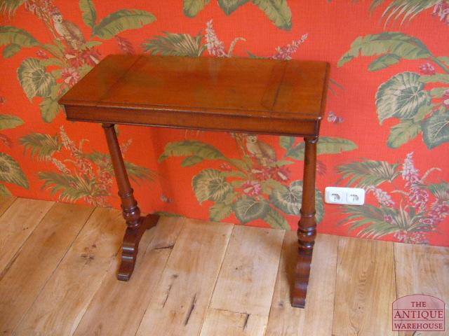 Prachtig gemaakt antiek mahonie reis tafeltje wat volledig uit elkaar te halen is en zodoende makkelijk met de eigenaar verre rizen kon maken. De poten zijn er af te schroeven evenals het opstaande randje wat demonteerbaar is. VERKOCHT