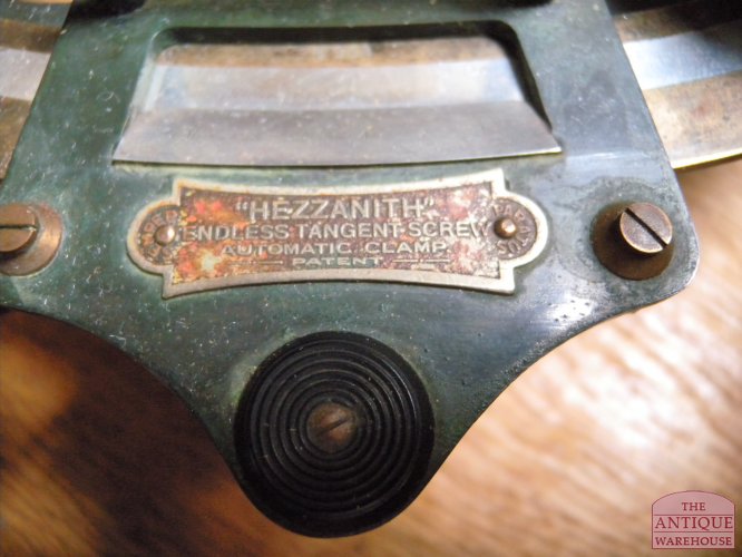 Mooi en compleet antiek sextant van de maker Hezzanith " Endless Tangent Screw, automatic Clamp patent. Bijzonder is de eiken kist, van de 100 kisten zijn er 99 mahonie.