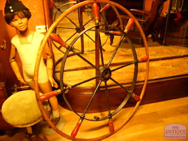 Mooi antiek stuurwiel van circa 120 cm in doorsnede, zeer decoratief.