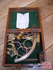 Mooie antieke sextant Wilson & Gillie Bruce & Sons Ltd Cardiff, gemaakt tussen 1900 en 1920. VERKOCHT Wilson en Gillie, Bruce & Sons, met adressen in Swansea, Newport en Cardiff in Wales, waren een filiaal van Wilson & Gillie of North Schilden. Ze waren actief van 1900 tot 1950. Hun adres in Cardiff van 1900 tot 1919 was ButeStreet. Ik heb tot nu toe geen verder onderzoek gedaan naar dit bedrijf, dus ik heb geen latere adresgegevens. De details van de makers zullen je waarschijnlijk geen erg precieze datum geven, ben ik bang. Ik neem aan dat er geen National Physical Laboratory Certificate van nauwkeurigheid in de doos zit, aangezien deze gedateerd zijn. John Wilson Gillie, de oprichter, werd geboren op 31 maart 1864. Op 31 juli 1880 ging hij voor vier jaar in de leer bij J.J. Wilson and Sons, nautische instrumentenmakers van Sunderland. Na de stage bracht hij zes maanden tot een jaar door als 'verbeteraar' in Glasgow, en startte vervolgens een nieuw bedrijf 'Wilson en Gillie' in North Shields. Op dat moment had het zeil net plaatsgemaakt voor stoom en houten schepen voor staal, en de spoorwegen concurreerden om de kolen van het noordoosten van Engeland tot Londen en het zuiden. In 1858 gebruikten slechts zeven van de 44 scheepswerven aan de Tyne ijzer, maar in 1862 waren dat er tien, met ongeveer 4.000 man in dienst. Deze veranderingen hadden een aanzienlijk effect op de fabrikanten van nautische instrumenten, aangezien het magnetische kompas voor een houten zeilschip heel eenvoudig was en weinig compensatie vereiste. Voor stalen schepen was veel meer nodig en dit was een periode van grote ontwikkeling, zowel in de kompaskom als in het bakhuis waarin deze was gehuisvest. In 1870 ontwierp Sir William Thomson (later Lord Kelvin) zijn standaardkompas met droge kaarten, dat alle eerdere ontwerpen volledig verving. Wilson en Gillie begonnen als agenten voor het Thomson-kompas, maar later werd J.W. Gillie gebruikte soortgelijke principes en ontwierp de kompasophanging opnieuw en patenteerde het 'UNIT'-standaardkompas. Het werd populair bij lokale reders en scheepsbouwers. In 1910 bevond de firma John Lilley and Son (opgericht in 1812), gevestigd in London Street 10, London EC3, zich in financiƫle moeilijkheden en werd gered met de hulp van John Wilson Gillie, die op 8 augustus 1911 een nieuw bedrijf oprichtte. firma John Lilley and Son Limited. John Lilley and Son waren de enige Londense agenten voor Sir William Thomson geweest, een zeer benijdenswaardige positie in deze periode, toen het Thomson-kompas voorop liep. Helaas had de heer Lilley ruzie gehad met het bedrijf uit Glasgow, dat het bureau terugtrok en hun eigen filiaal in Londen oprichtte (later Kelvin White en Hutton). Op 7 november 1913 fuseerde de firma John Lilley and Son Limited uit Londen met Wilson en Gillie uit North Shields, en na deze datum droegen de door de twee bedrijven vervaardigde instrumenten de naam John Lilley and Son Limited uit Londen en North Shields. Tijdens de jaren dertig verkeerden veel van de Londense makers van nautische instrumenten in moeilijkheden, waaronder John Lilley and Son Limited en Reynolds and Son, Dobbie and Clyde Limited, en de heer J.W. Gillie regelde een fusie tussen deze twee bedrijven. Het nieuwe bedrijf werd Lilley and Reynolds Limited.