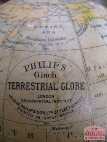 Zeer mooie kwaliteit antieke globe gemaakt door de firma Philips. Terrestrial Globe London, Geographical institute. George Philip & Son Ltd. 32 Fleet Street, Printed in Great Britain.