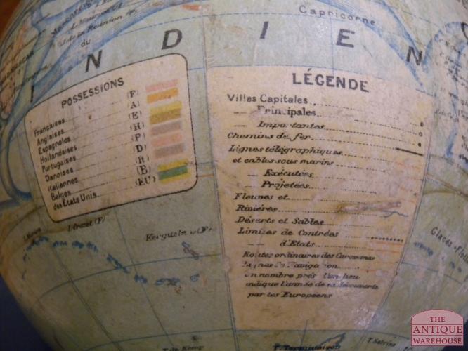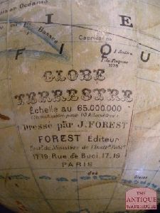 Mooie antieke Franse Globe van circa 1920 gemaakt door J.Forrest Editeur 17,19 Rue de Bucci Paris