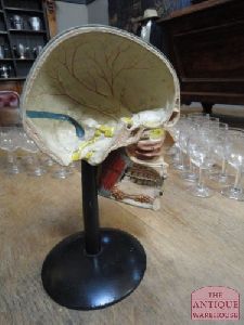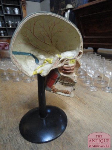 Model van circa 1930, gemaakt van een soort rubber, zo voelt het in ieder geval aan. De onderkaak en wat er aan vast zit kan uit elkaar gehaald worden.